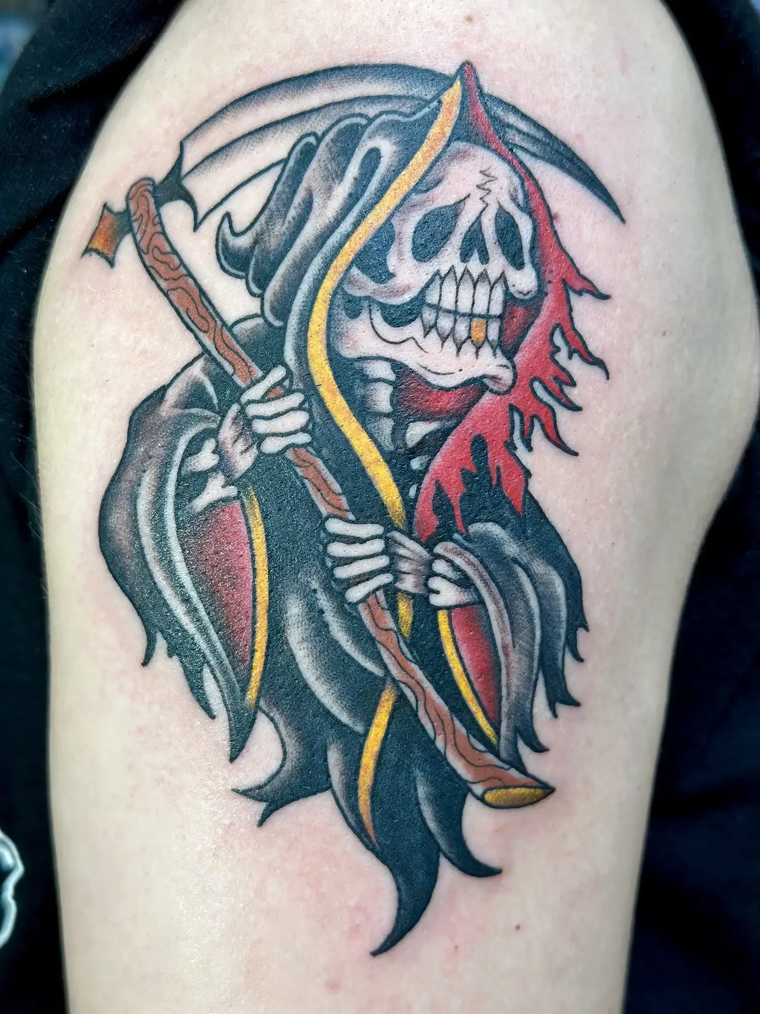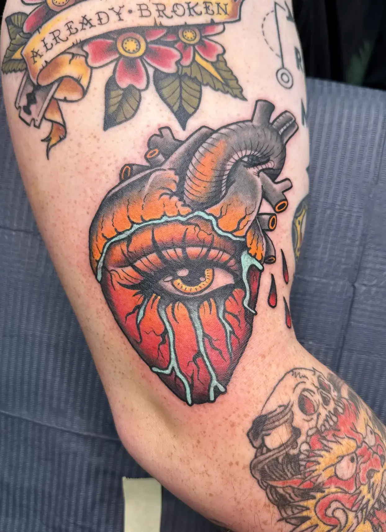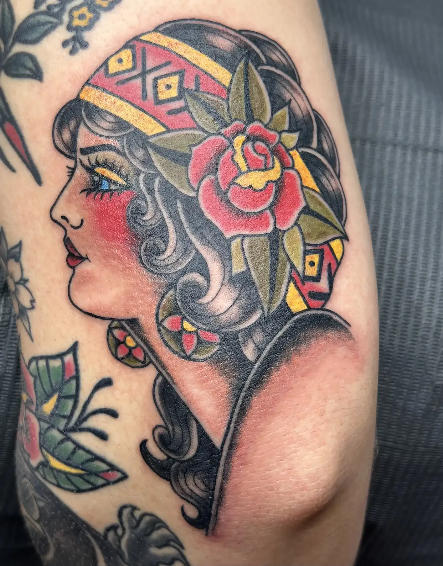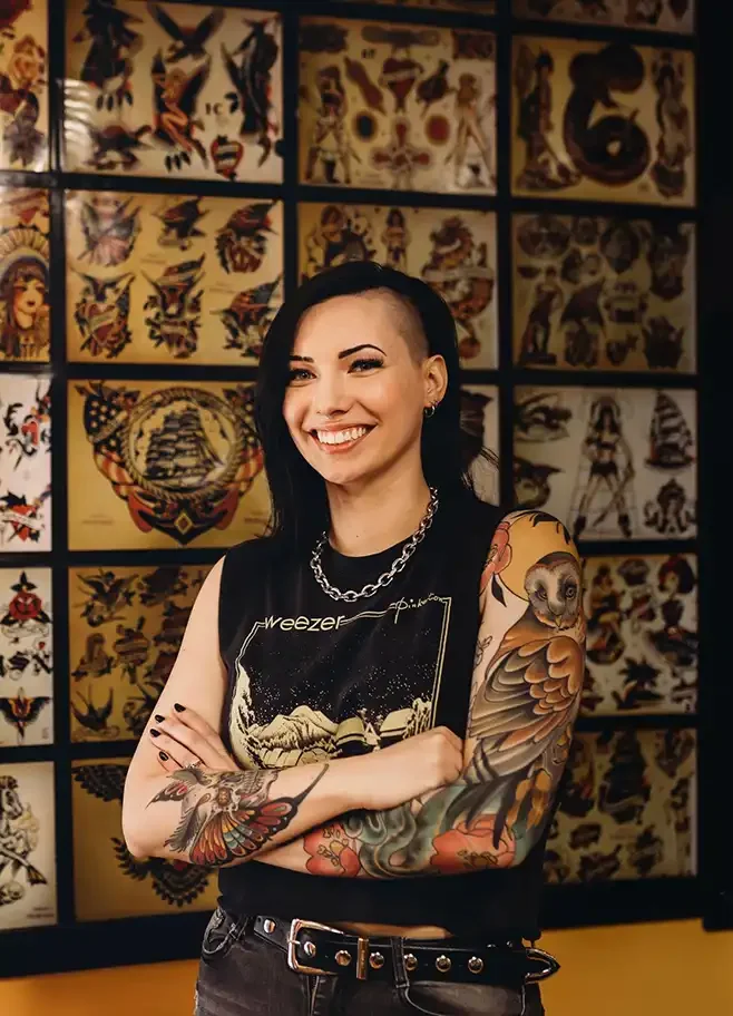 A lifelong artist and musician, Mel has always been drawn to bold, vivid color. That love for painting translates directly into her tattoo work: vibrant, solid color pieces built to last. While she specializes in American Traditional color tattoos, she also enjoys black and gray work and adapting other styles to bring each client’s vision to life.